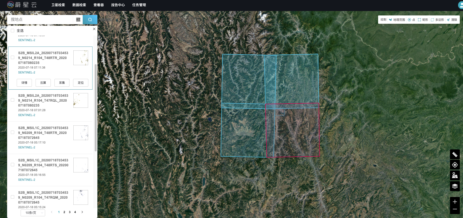 进入数据检索页面https://portal.vsat.cloud/search ,搜索您感兴趣的区域 。