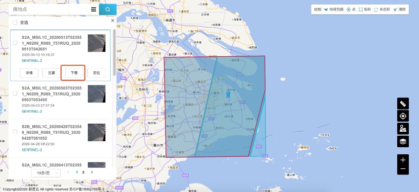 在采集完成时,【采集】按钮会变成【下载】按钮,点击【下载按钮】即可将遥感影像原始文件,下载到本地。