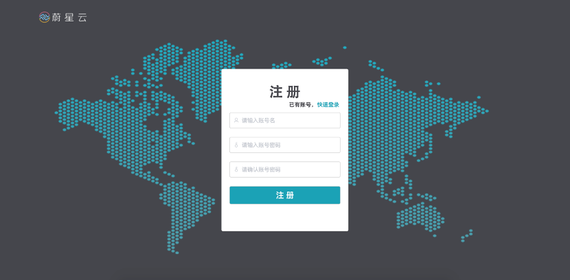 如果您未注册蔚星云账号,请点击快速注册按钮,进入注册页面: